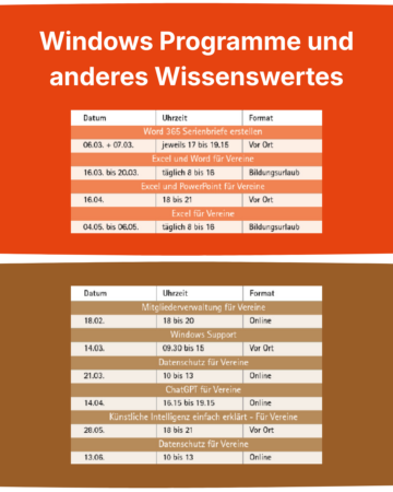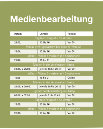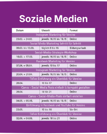 Ob kurze Workshops zu aktuellen Einzelthemen oder eine umfassende Qualifizierung zum Digitalen Vereinscoach in den Bereichen Verwaltung oder Technik – das Angebot ist flexibel, praxisnah und direkt auf die Bedürfnisse von Vereinen zugeschnitten.
