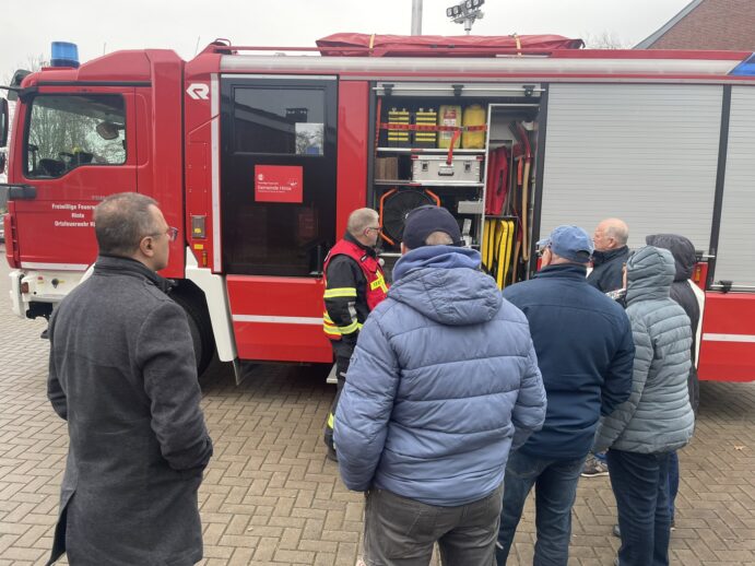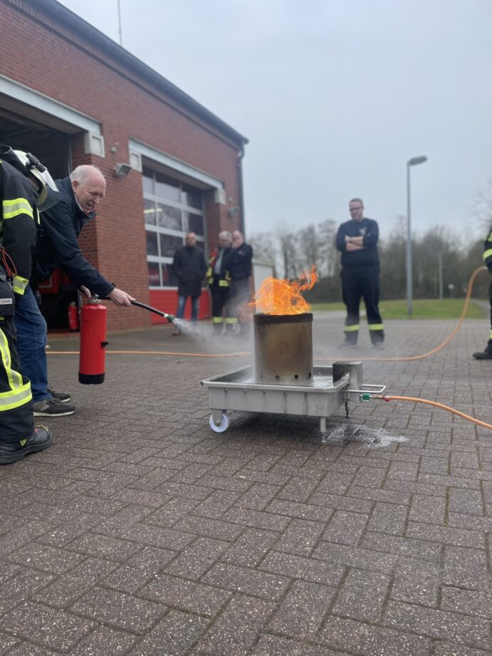 Neben einer Vorstellung der Technik der Ortsfeuerwehr Hinte erhielten die Ortskümmer*innen einen Einblick in die vielfältigen Aufgaben der Einsatzkräfte. Ein besonderes Highlight war das Feuerlöscher-Training, bei dem die Teilnehmenden selbst aktiv werden konnten.
