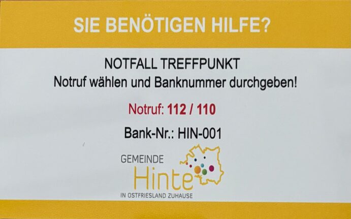 Ab sofort sind rund 100 Sitzbänke in der Gemeinde Hinte mit Notfall-Schildern ausgestattet!
