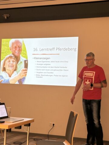 Am Dienstag, den 18. November 2025, haben die Teilnehmer Ebay & Kleinanzeigen kennen gelernt. Auf dem Flohmarkt im Internet gab es so einiges zu entdecken. Digitallotse Stephan Breywisch zeigte als Impuls in seiner Präsentation die eigenen Beispiele vom Verkauf des Kinderfahrrads oder dem Einkauf von Reitbekleidung für sein Kind.