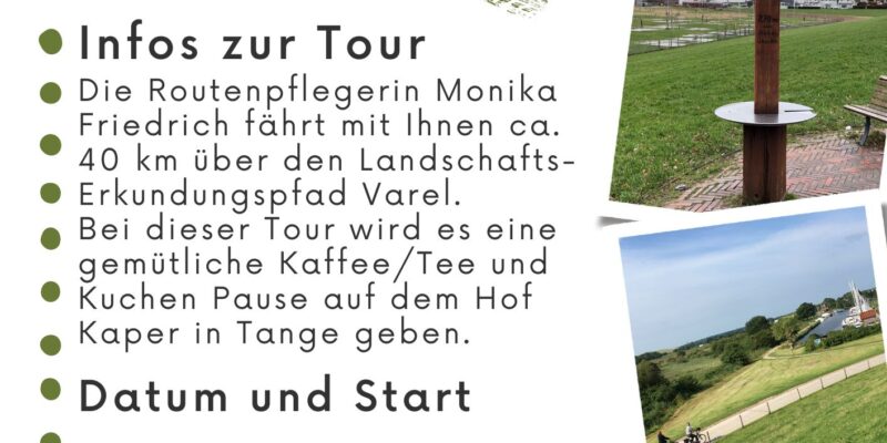 Monika Friedrich und das Team vom Landschafts-Erkundungspfad laden Sie herzlich zu einer geführten Radtour ein! Am Samstag, den 17.08., um 12:45 Uhr starten wir auf dem Schloßplatz in Varel. Dieses…