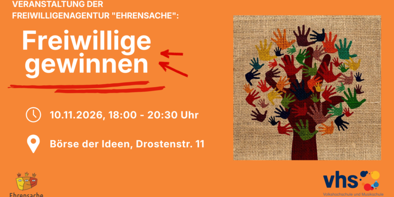 Warum engagieren sich Menschen ehrenamtlich? Wer die Motivation von Freiwilligen versteht, kann gezielter ansprechen und mehr Menschen für ein Engagement begeistern. In diesem Workshop beschäftigen wir uns mit den Beweggründen…