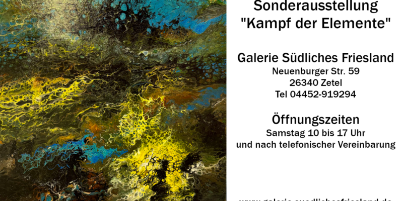 Sonderausstellung „Kampf der Elemente“. Bilder von Uwe Schmalstieg. “Kampf der Elemente” lautet der Titel der Sonderausstellung anlässlich des 20jährigen Jubiläums der Galerie Südliches Friesland in Zetel. In der Galerie, die…
