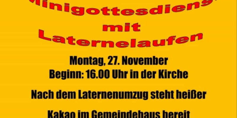 Am Montag, 27.11. lädt die Kirchengemeinde Rhade alle Kinder zu einem Minigottesdienst ein. Anschließend wird gemeinsam mit der Laterne gelaufen bevor im Gemeindehaus heißer Kakao getrunken werden kann.