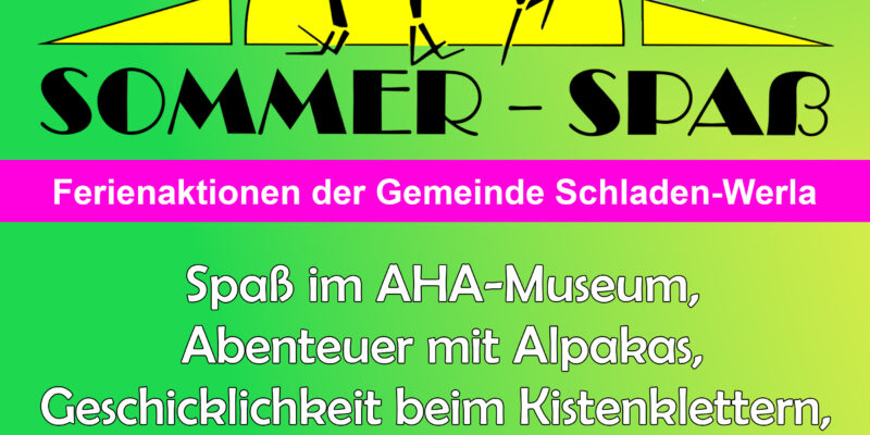 Endlich ist es soweit. Der Sommer ist da und bald sind Sommerferien. Und was wären die Sommerferien ohne „Sommer-Spaß“ – Aktionen in der Gemeinde Schladen-Werla. Sommerferien, Abenteuer, Spiel und Spaß…