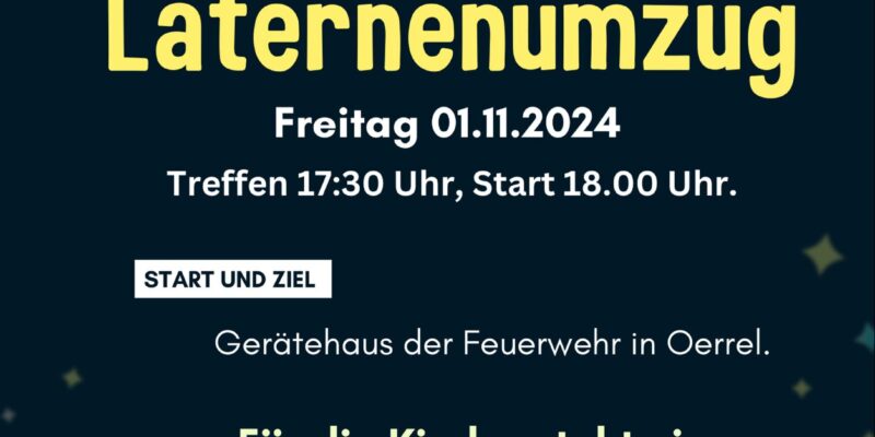 Die Dorfgemeinschaft Oerrel lädt Sie herzlich ein, am 01. November 2024 an einem bezaubernden Laternenumzug teilzunehmen. Treffzeitpunkt ist 17:30 Uhr am Gerätehaus der Feuerwehr, der Umzug startet um 18:00 Uhr…