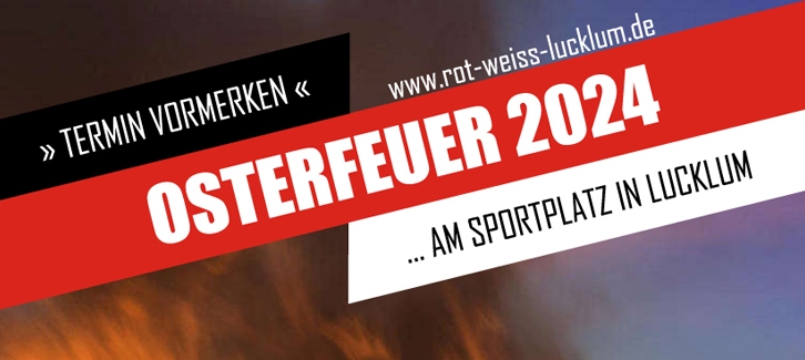 Das alljährliche, vom Sportverein ausgerichtete Osterfeuer in Lucklum wird auch in diesem Jahr wie gewohnt am Ostersonntag stattfinden. Termin: Sonntag, 31.03.2024 Ort: Lucklum (am Sportplatz) Beginn: 19:00 Uhr Entzünden: 20:00…