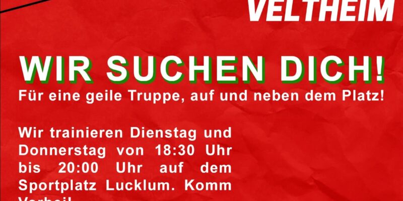 Unser Team der SG Lucklum/Veltheim (1.Nordharzklasse) sucht zur neuen Saison 2024/25 interessierte Kicker, die uns verstärken möchten! ⚽ Du hast Interesse mal unverbindlich reinzuschnuppern? Du bist mindestens 17 Jahre alt?…