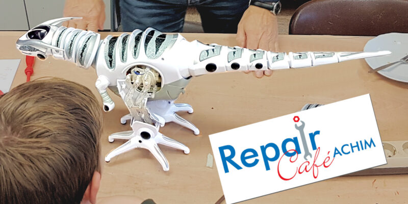 Dinosaurier mit Hüftschaden oder sonst was kaputt? – Keine Sorge! – Wir vom Repair Café Achim bekommen das schon wieder hin! Ob Kaffeemaschine, Kamera, Föhn, Uhr, Computer, Handy, Radio, Mixer,…