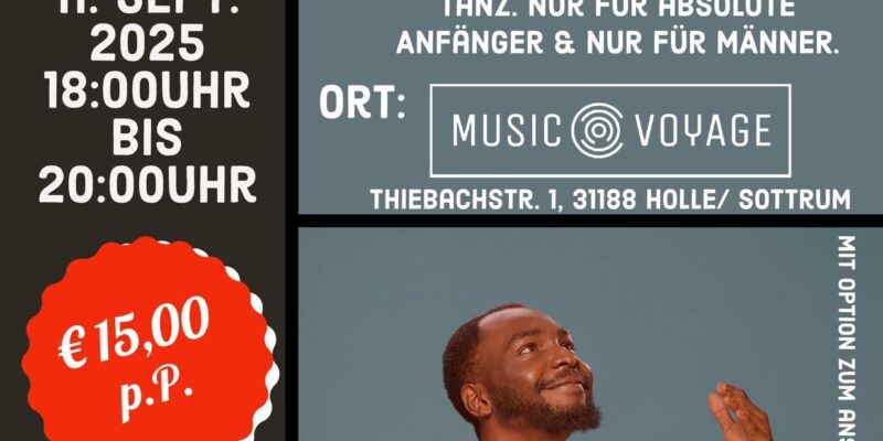 Nur für absolute Anfänger und nur für Männer! Lernt mit uns die Grundschritte im Salsa und entdeckt die Leidenschaft für diesen lateinamerikanischen Tanz. Do. 11.09.2025 18:00 Uhr bis 20:00 Uhr 15,00…