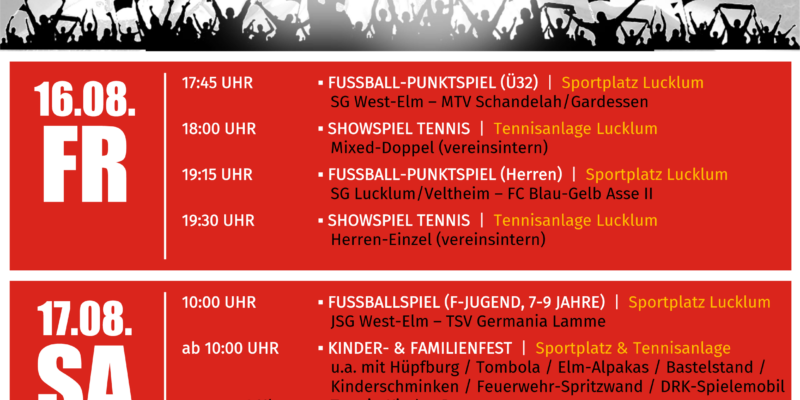 Alle Details, Aktivitäten und Programmmpunkte von FR (16.08.) bis SO (18.08.) können dem aktualisierten Plakat entnommen werden.