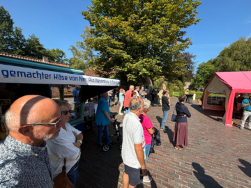 Nah an den Künstlerinnen und Künstlern, nah an den Kunstwerken und dazu das beliebte selbstgemachte Brot des Heimatvereins Neuenburg an einem Tag genießen! Die Besucher können sich am Neuenburger Schloss auf eine tolle Atmosphäre inmitten besonderer Kunstwerke, auf interessante Künstler zum Anfassen, auf leckere, lokale gastronomische Entdeckungen, Musik und Austausch freuen. Es lohnt sich, das historische Rauchkatengelände mit der Bischüür, der Remise, der Friesenscheune und natürlich der Rauchkate in Neuenburg an diesem Sonntag zu besuchen.