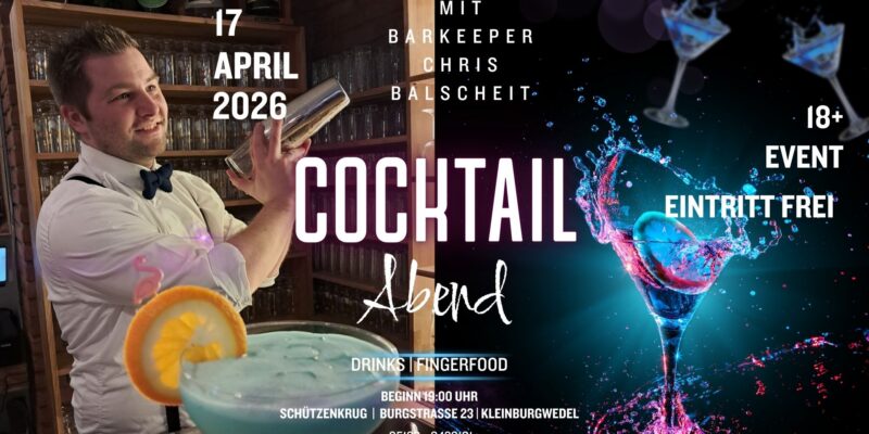 Den Termin direkt zum Abspeichern in eurem Handy findet ihr hier – also gleich sichern und dabei sein! 📅🔥Schützenverein Kleinburgwedel von 1905 e.V. – Cocktail-Abend mit Chris-Allgemeines