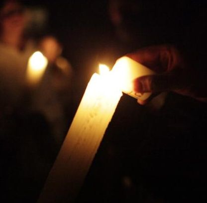 Der Gottesdienst beginnt in der dunklen Kirche mit Lesungen und Liedern der Jugendband. Dann wird die neue Osterkerze angezündet...