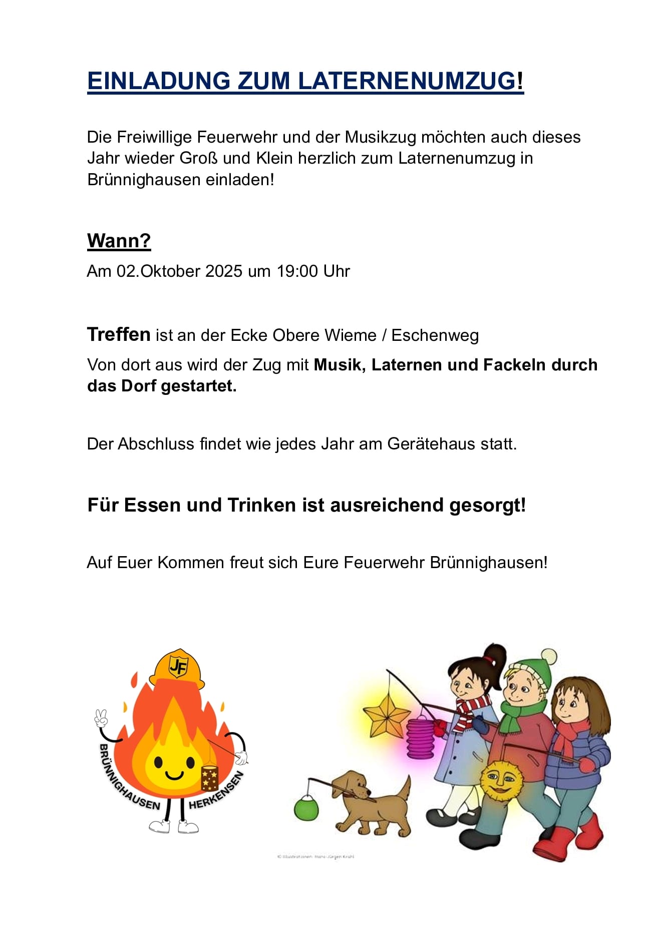 Treffen zum Laternenumzug in Brünnighausen am 02.10. um 19.00 Uhr an der Ecke Obere Wieme / Eschenweg im Oberdorf.