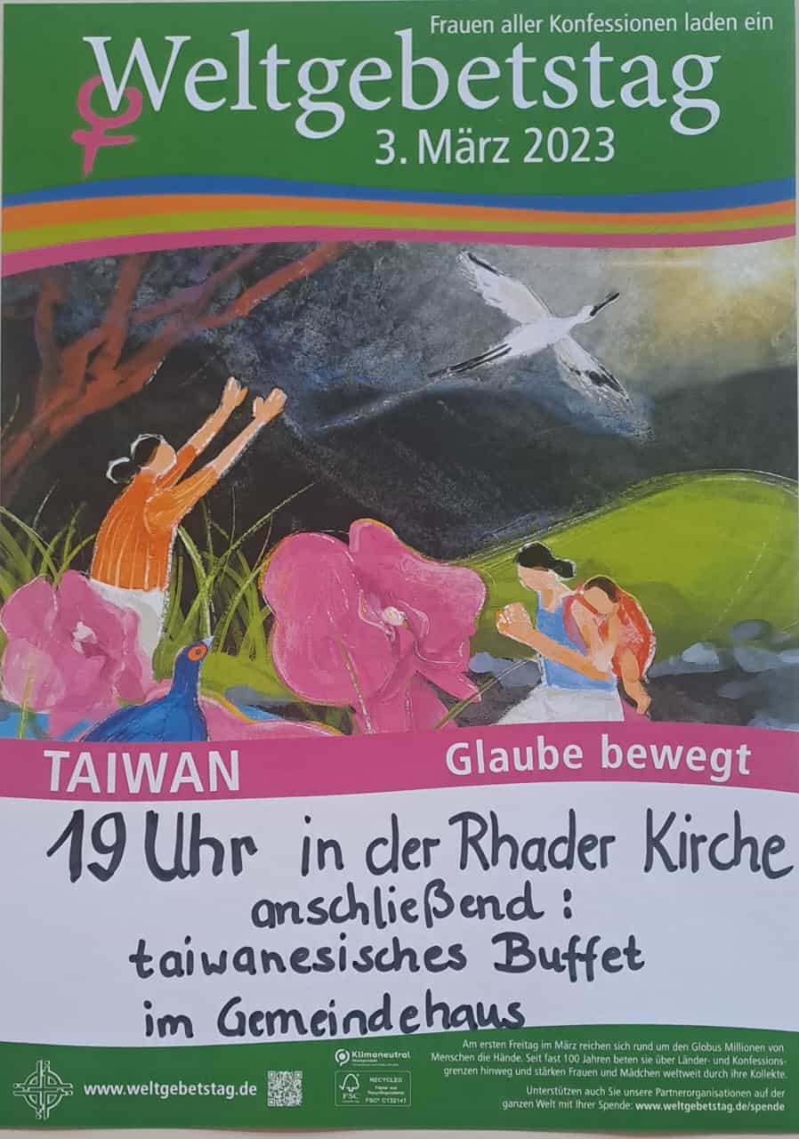Die Frauen der St-Gallus-Kirchengemeinde Rhade laden zum Weltgebetstag ein mit anschließendem taiwanesischen Buffet. |