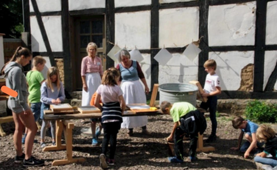 Ferienprogramm der Samtgemeinde Nord-Elm Wir zeigen, wie früher mit Hilfe von Wasserkraft Korn gemahlen und Papier hergestellt wurde. Die Kinder werden mit mittelalterlicher Technik Büttenpapier herstellen und aus handgeschöpftem Papier…
