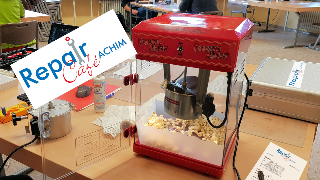 Popcorn-Maschine oder sonst was kaputt? – Keine Sorge! – Wir vom Repair Café Achim bekommen das schon wieder hin! Ob Kaffeemaschine, Kamera, Föhn, Uhr, Computer, Handy, Radio, Mixer, Nähmaschine, Staubsauger,…