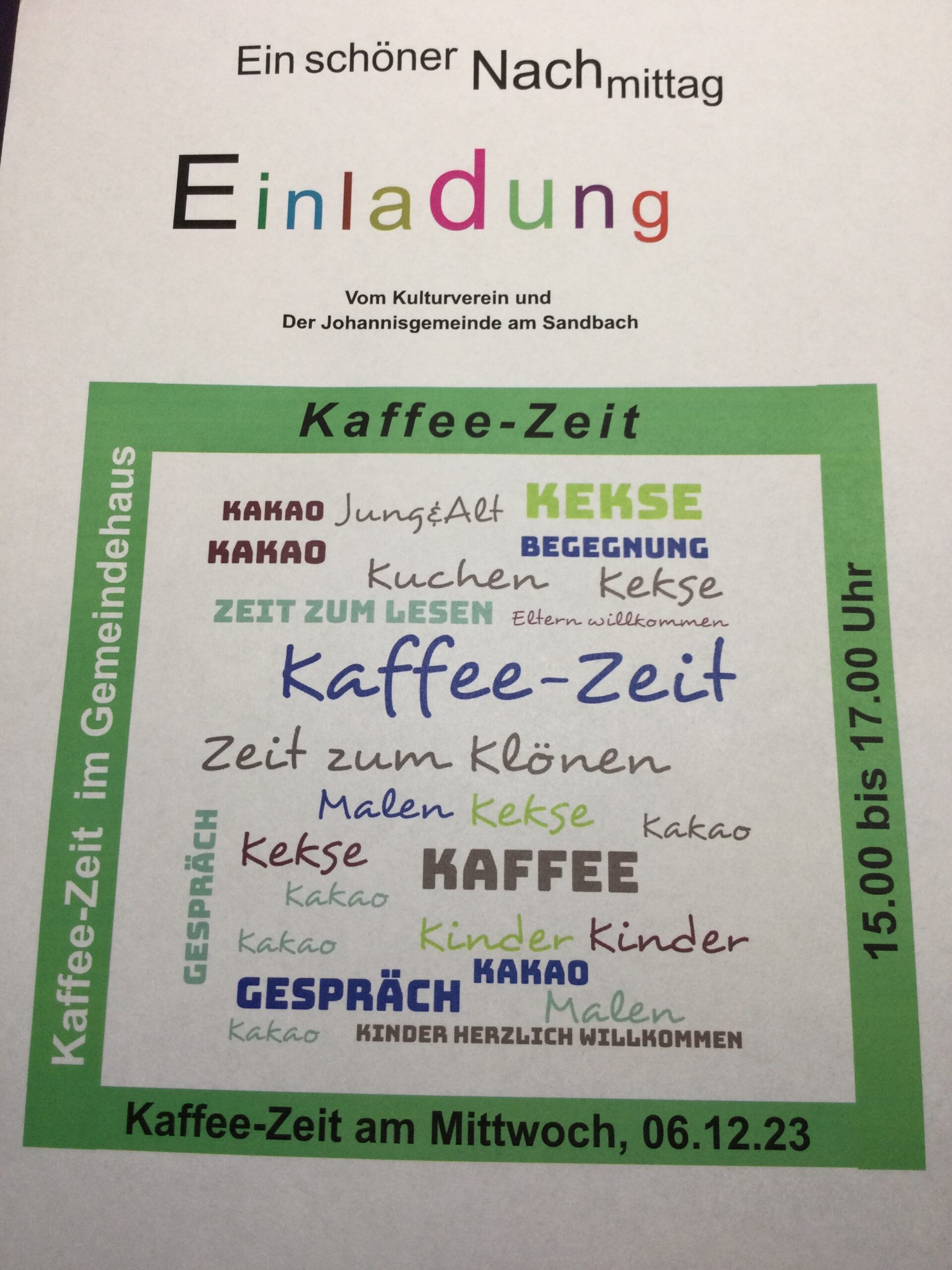 Schandelah „Der Andere Advent“ Diese gemeinsame Aktion der Johannisgemeinde am Sandbach und des Kulturvereins Schandelah soll uns dazu anregen, die kommende Advents-und Weihnachtszeit bewusster wahrzunehmen. Täglich blättern wir ab dem…