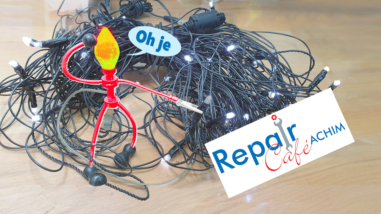 Lichterkette oder sonst was kaputt? – Keine Sorge! – Wir vom Repair Café Achim bekommen das schon wieder hin! Ob Kaffeemaschine, Kamera, Föhn, Uhr, Computer, Handy, Radio, Mixer, Nähmaschine, Staubsauger,…