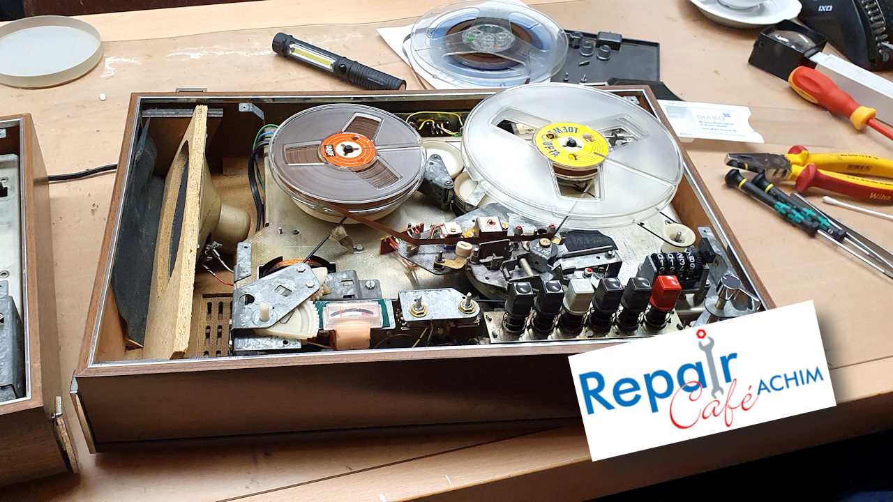 Ton leiert? Tonbandgerät oder sonst was kaputt? – Keine Sorge! – Wir vom Repair Café Achim bekommen das schon wieder hin! Ob Kaffeemaschine, Kamera, Föhn, Uhr, Computer, Handy, Radio, Mixer,…