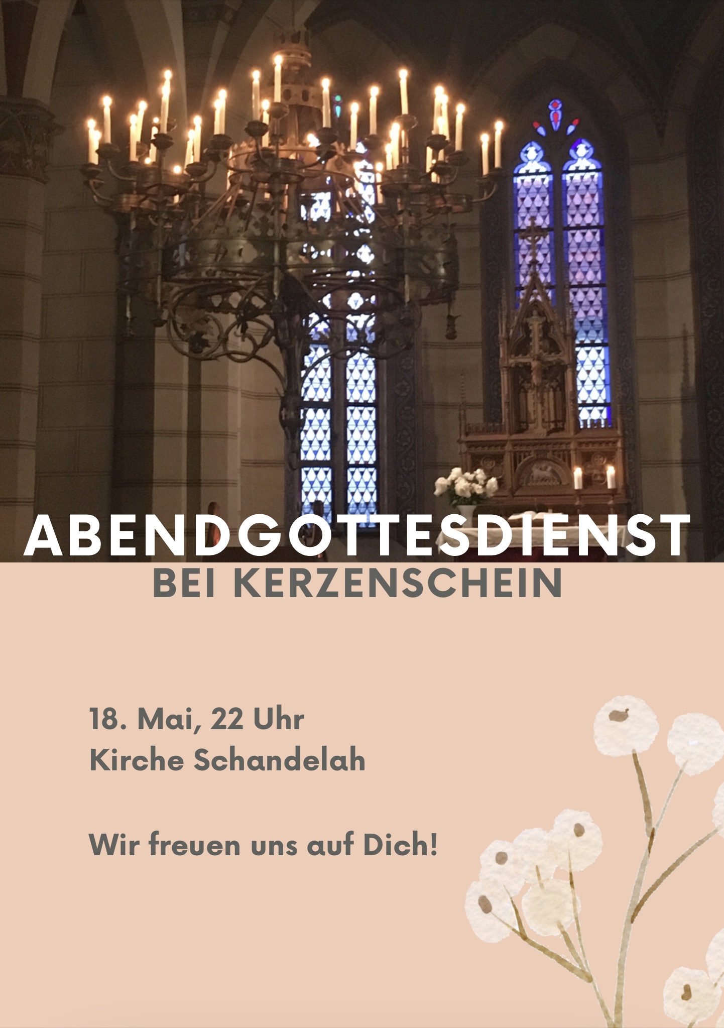 Abendgottesdienst bei Kerzenschein in Schandelah Auch in diesem Jahr erstrahlt wieder am Pfingstsamstag unsere Kirche im Kerzenschein des Kronleuchters. Dieser stimmungsvolle Abendgottesdienst wird musikalisch von Patriz Brünsch begeleitet. Im Anschluss sind… |