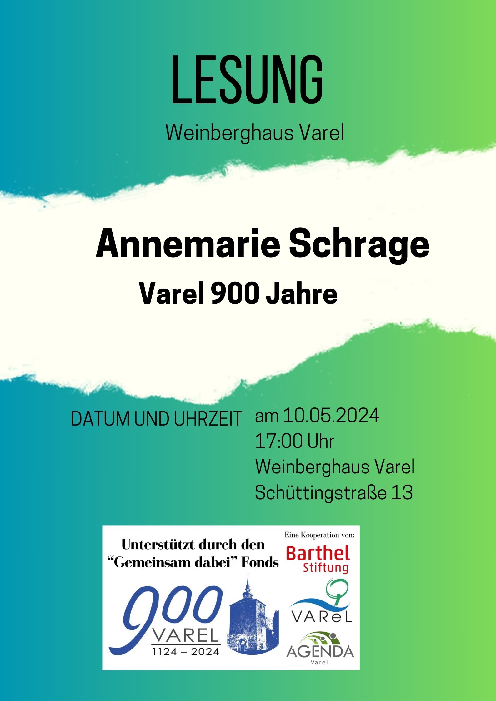 Annemarie Schrage liest aus ihrem neuen Buch "900 Jahre Varel" am Freitag, 10.05.2024 um 17 Uhr im Weinberghaus Varel. In Ihrem neuestem Buch macht sie eine Zeitreise in die letzten…