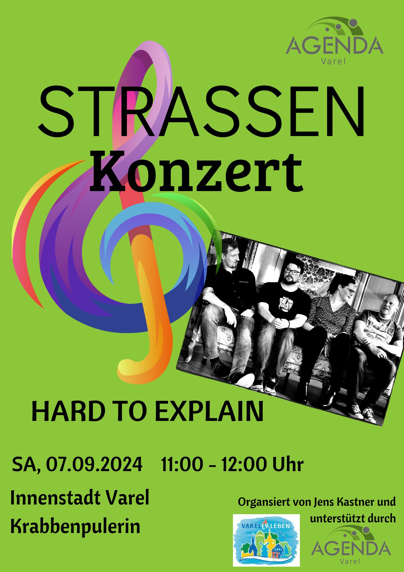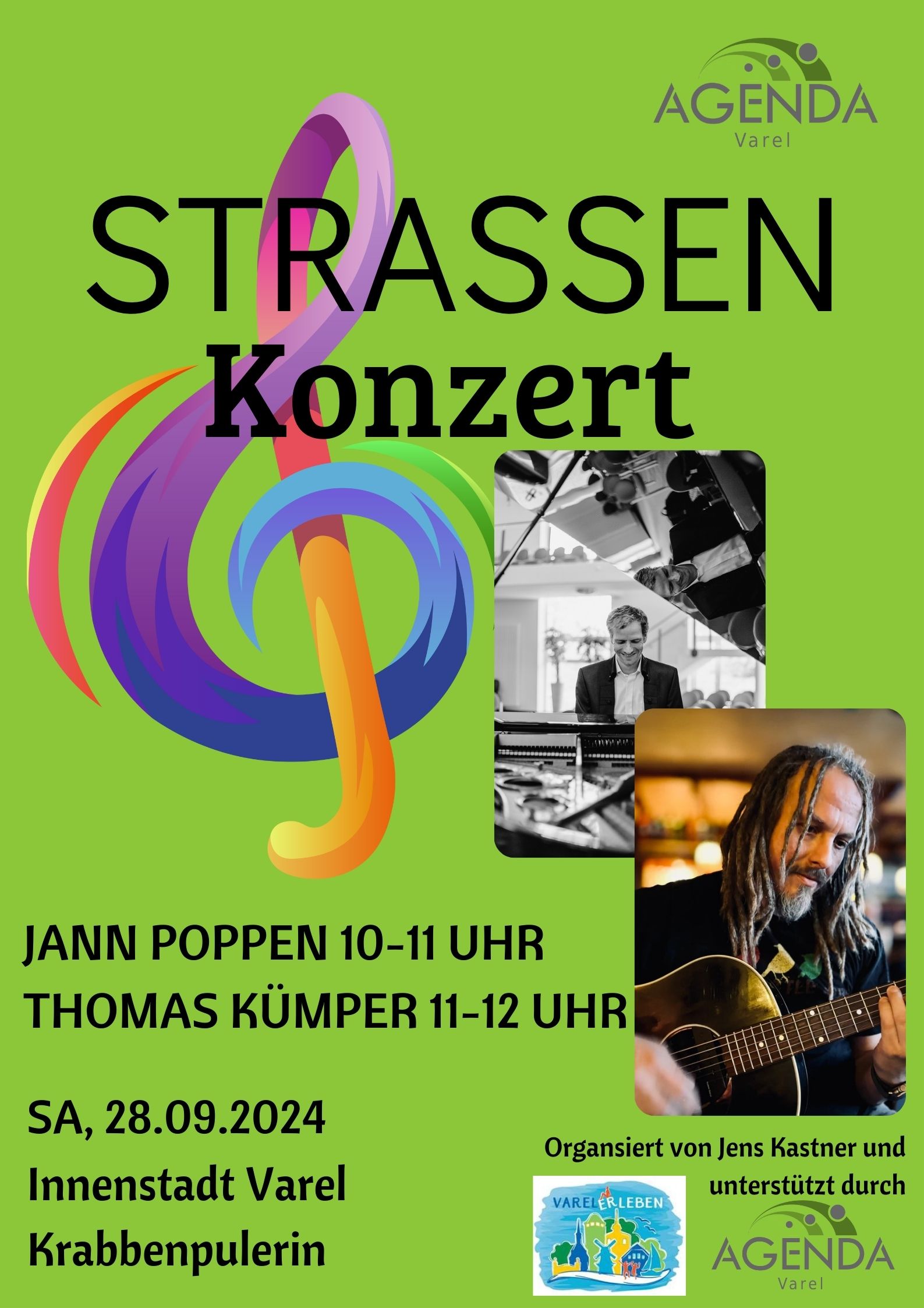 Im Sommer 2024 geht unsere Straßenkonzertreihe weiter. Immer von 11:00 bis 12:00 Uhr spielen unterschiedliche Künstler:innen in der Innenstadt Varel bei der Krabbenpulerin. Die Konzertreihe wird von Jens Kastner organisiert…