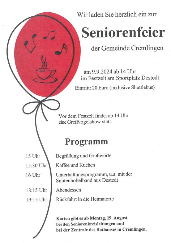 Am Mittwoch, den 25.09.2024 lädt die Martin-Luther-Kirchengemeinde wieder um 15.00 Uhr ins Gemeindehaus, Ramlinger Straße 25 in Ehlershausen zum Senioren-Nachmittag „Ü60 bei Luther“ ein. Bei Kaffee und Kuchen wollen wir…