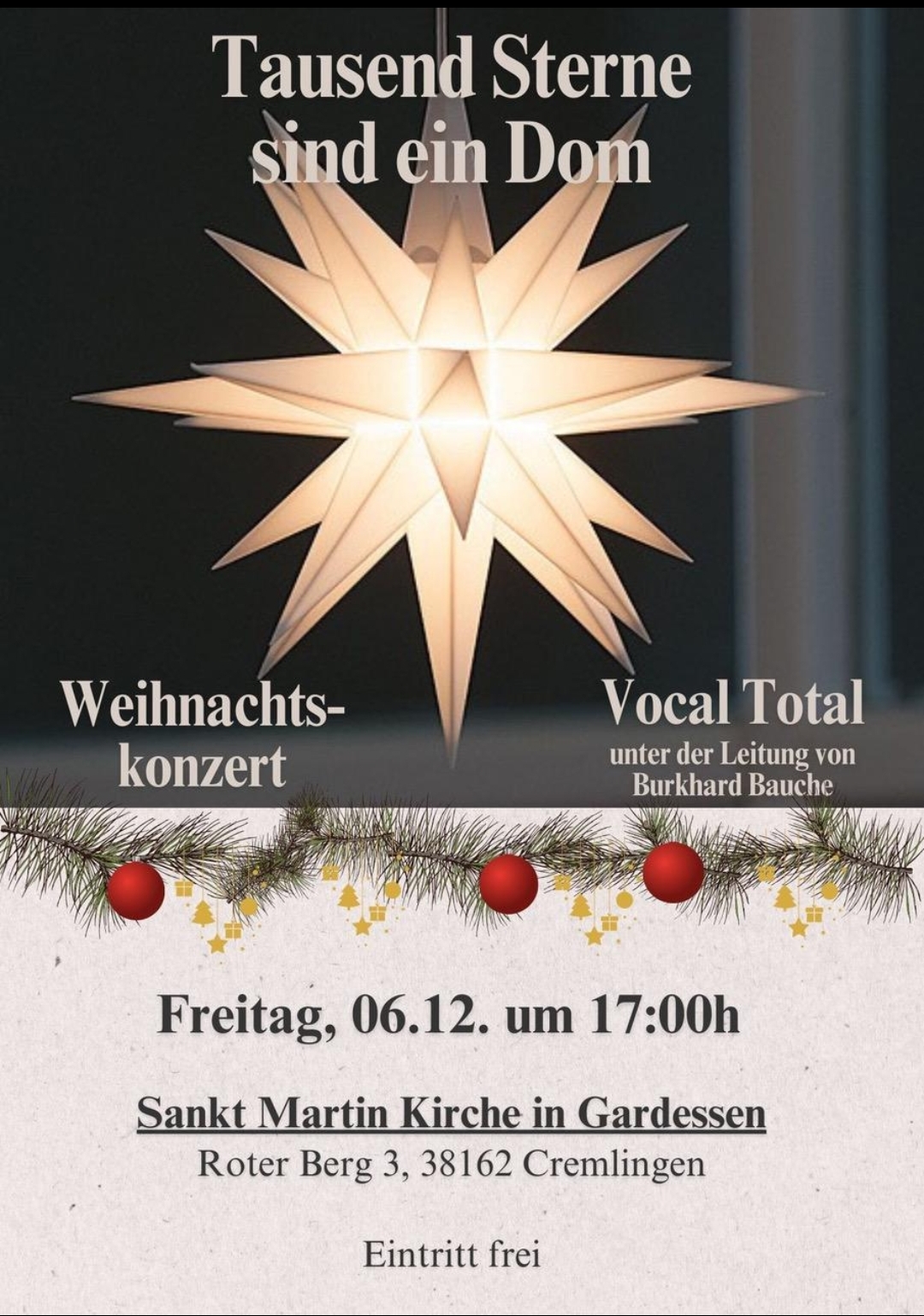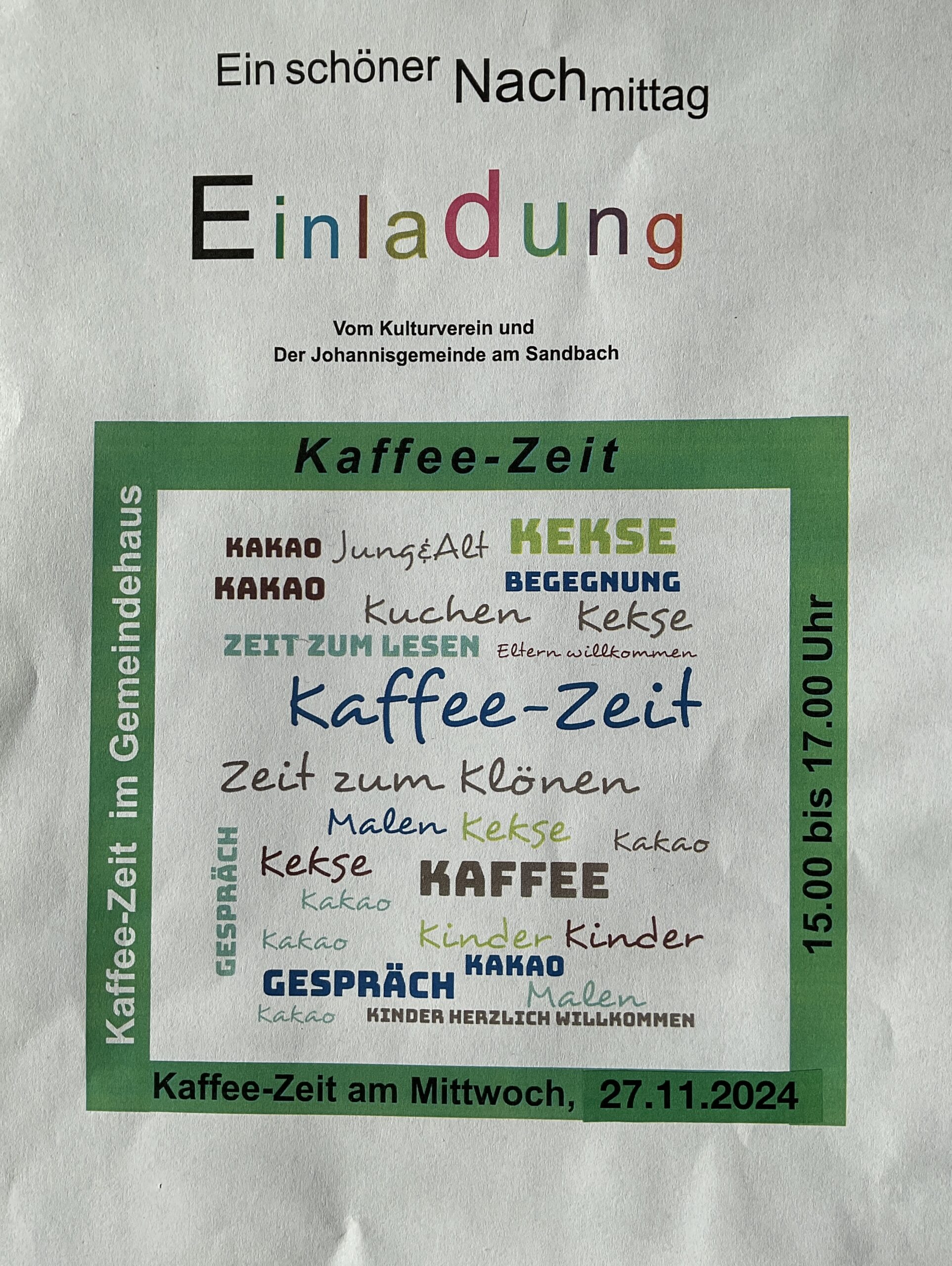 Am 1.Dezember 2024 wollen wir wieder gemeinsam am 1. Advent unseren Weihnachtsnachmittag begehen. Beginn ist um 15:00 Uhr im Heimathuus. Der Nachmittag soll dann gegen 17:00 Uhr ausklingen. Ort: Heimathuus Zetel,… |