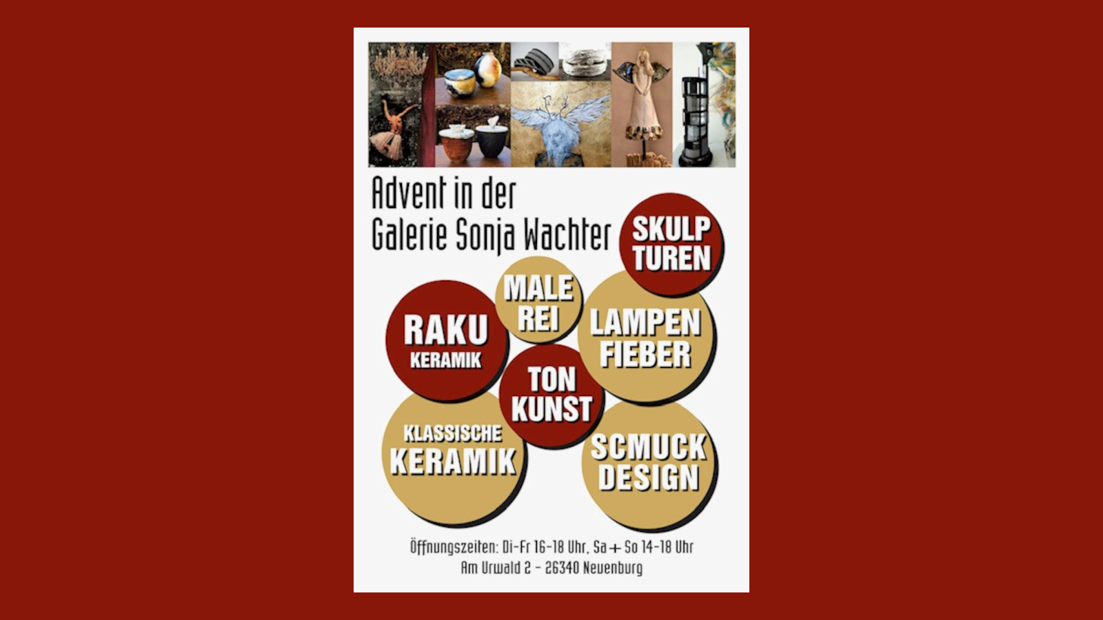 Liebe Kunst- und Musikfreunde, zum Ende des Jahres zeigt sich die Galerie Sonja Wachter in einem neuen Gewand. ADVENT IN DER GALERIE - zu sehen ist ein edles Potpourri von…