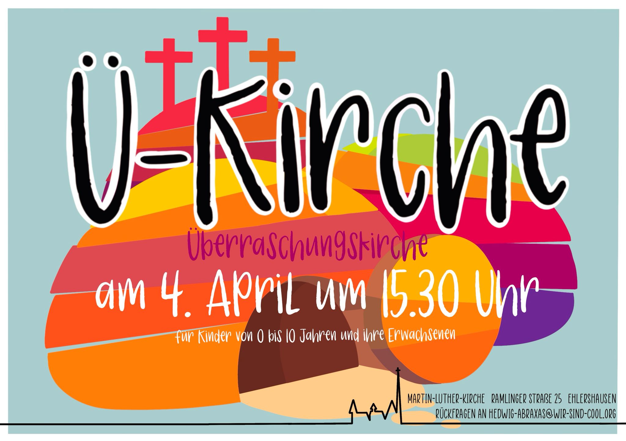 Liebe Kinder und Familien, am Freitag, den 4. April treffen wir uns wieder zur Ü-Kirche: von 15.30 bis 18 Uhr im Gemeindehaus in Ehlershausen. Natürlich ist auch in dieser Kinderkirche… |