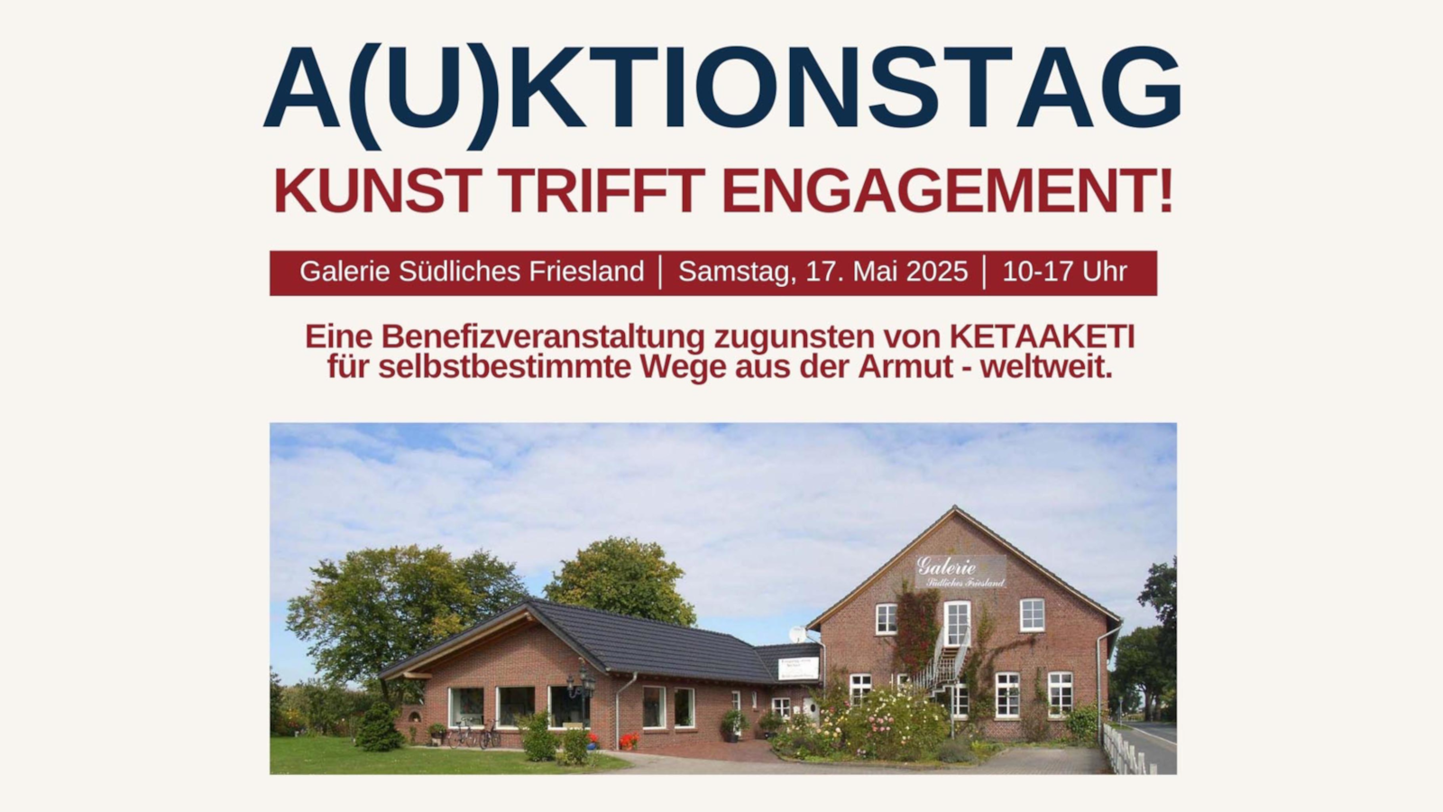 Die Galerie Südliches Friesland in Zetel veranstaltet am 17. Mai 2025 eine große Benefiz-Veranstaltung zugunsten der Organisation Ketaaketi, die die Existenz ärmster Familien und gleichzeitig den Schulbesuch derer Kinder mit…