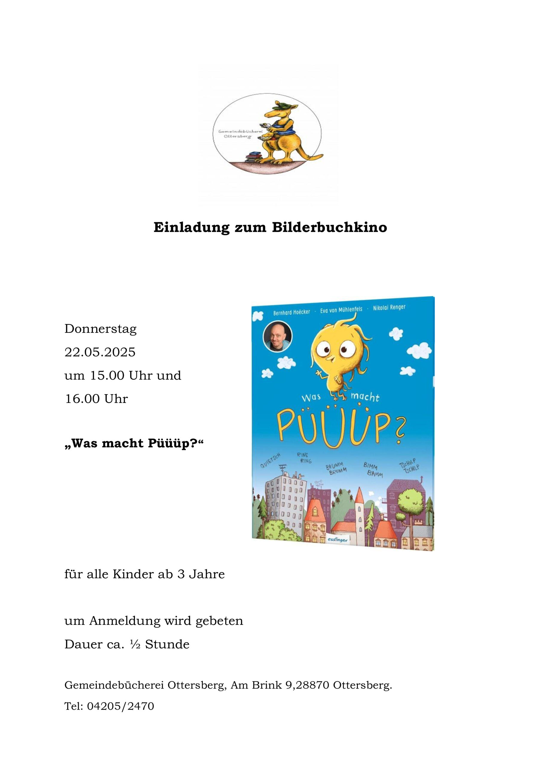 Vorstellung um 15 Uhr und um 16 Uhr Um Anmeldung wird gebeten.