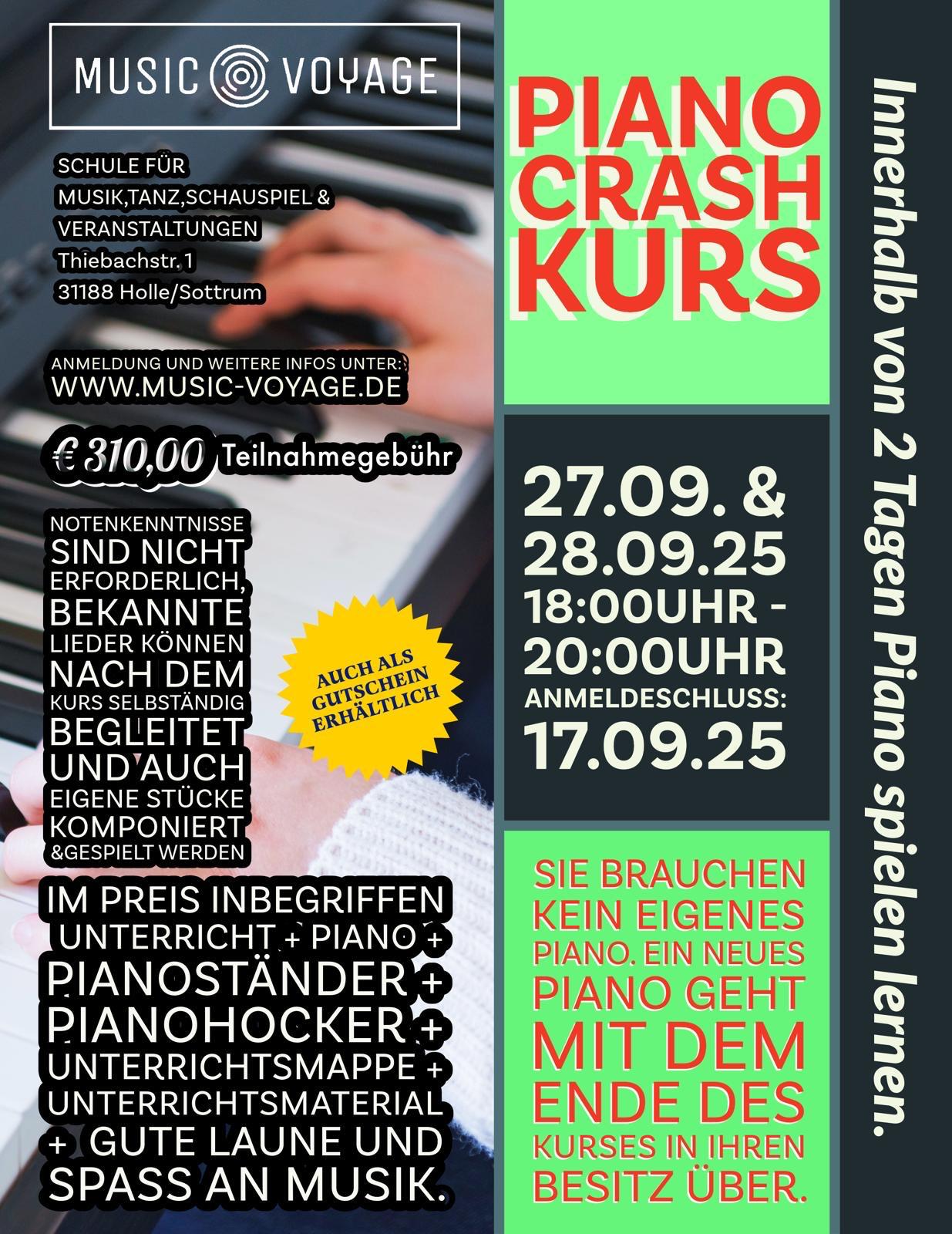 An 2 Tagen Piano spielen lernen. Unterricht, Piano und Zubehör inbegriffen Geschenk-Gutscheine sind schon jetzt erhältlich!