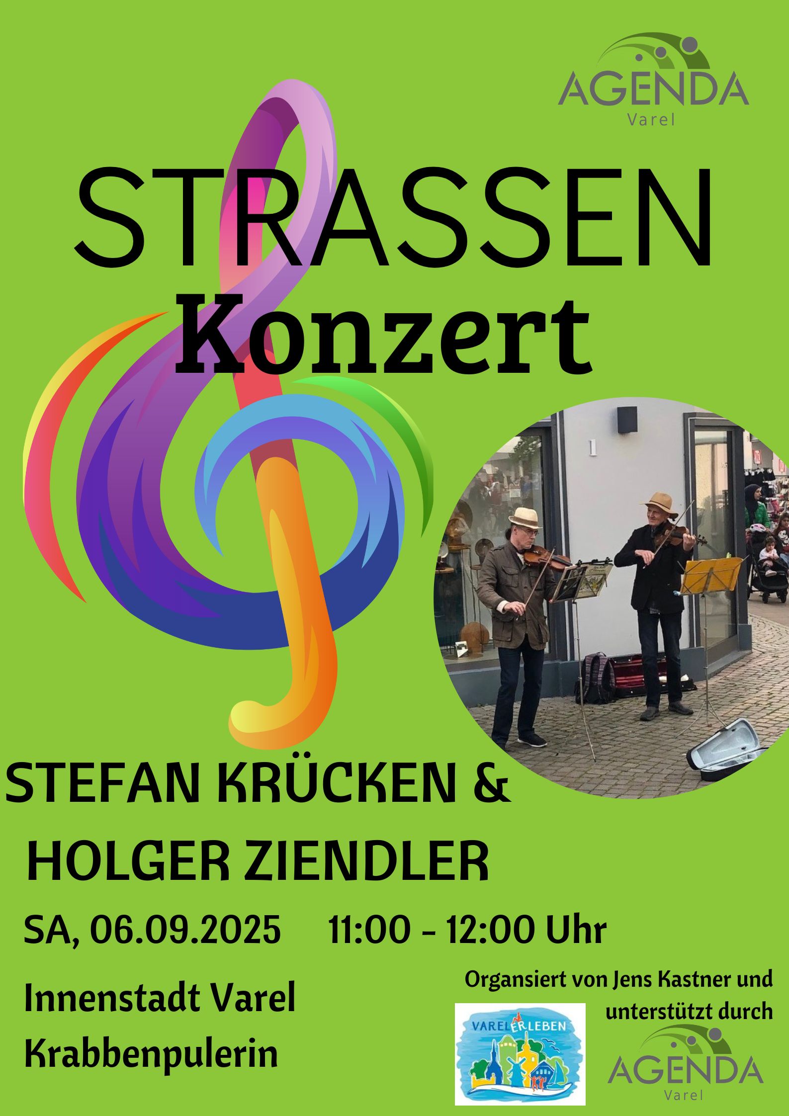 🎻 Zwei Geigen, ein ErlebnisSamstag, 6. September 2025, 11:00 Uhr – vor der Krabbenpulerin (Obernstraße).Die Oldenburger Profi-Geiger Stefan Krücken und Holger Zindler bringen klassische und moderne Geigenklänge in die Innenstadt.📍…