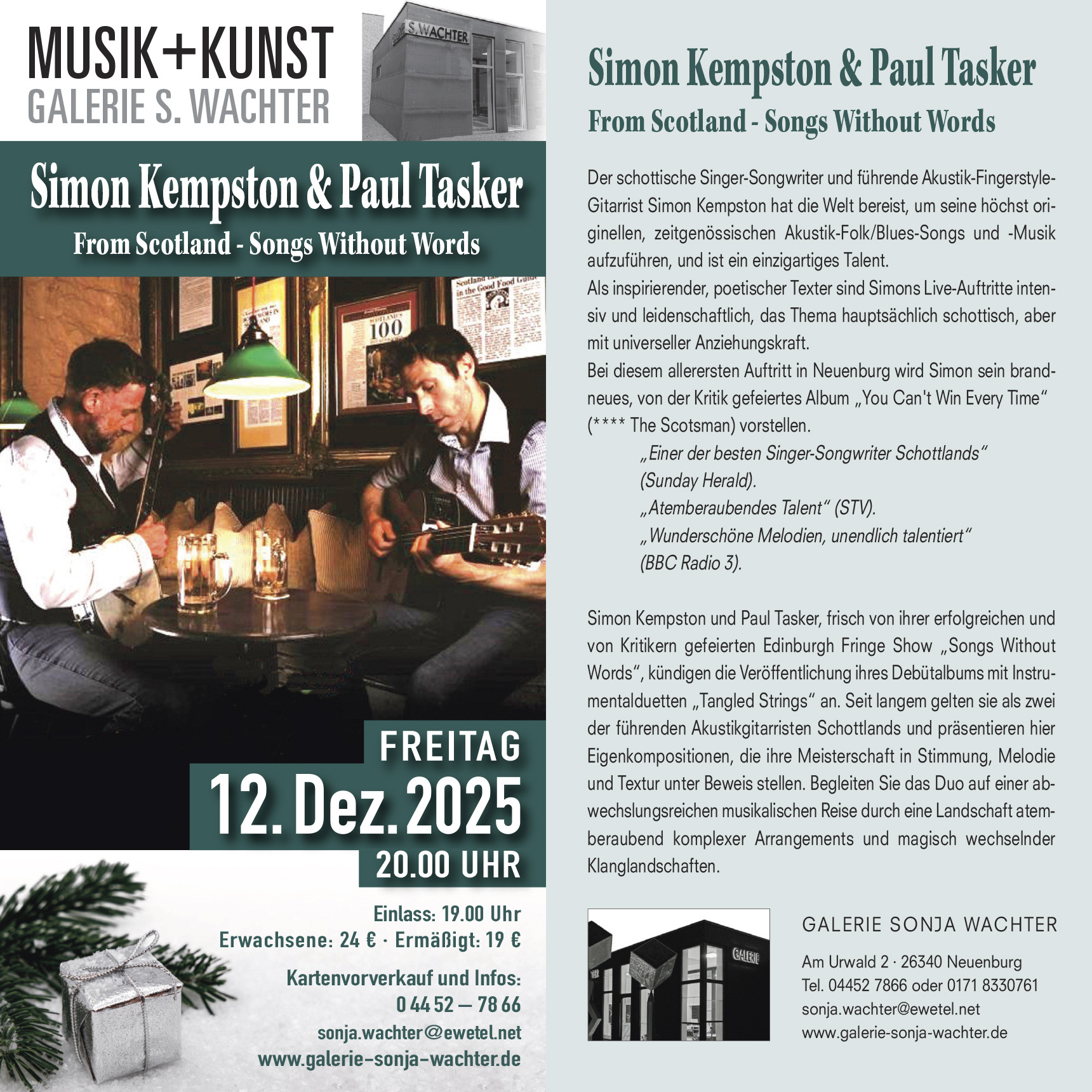 Simon Kempston und Paul Tasker, frisch von ihrer erfolgreichen und von Kritikern gefeierten Edinburgh Fringe Show „Songs Without Words“, kündigen die Veröffentlichung ihres Debütalbums mit Instrumentalduetten „Tangled Strings“ an. Seit…