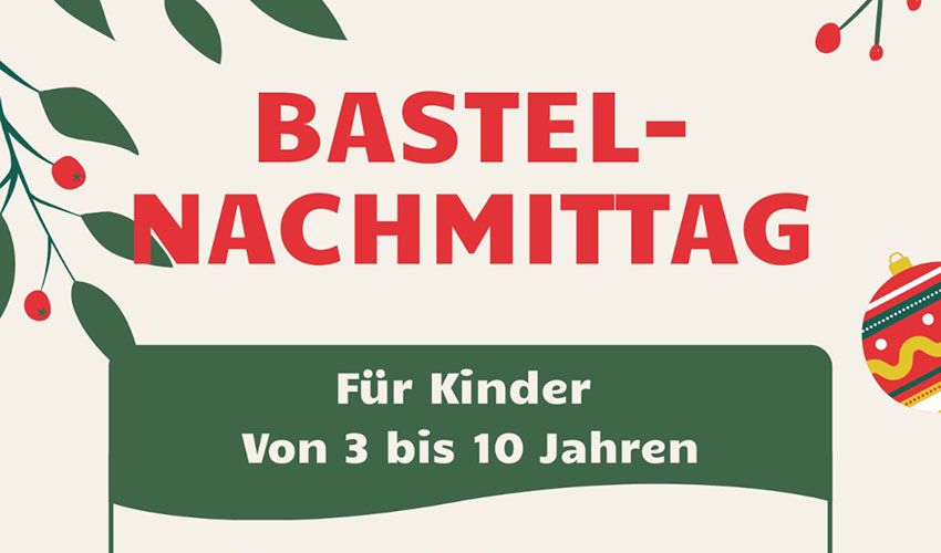 Am 17. Dezember erwarten Euch im Gemeindehaus viele tolle weihnachtliche Bastelaktionen - diesmal für alle Kinder von 3-10. Ihr könnt Euch aber auch an unserer freien Bastelstation austoben und Eurer…