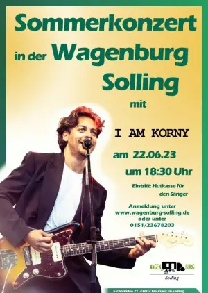 Sommerkonzert in der Wagenburg Solling mit I AM KORNY am 22.06.2023 um 18:30 Uhr Eintritt: Hutkasse für den Sänger Anmeldung unter: http://www.wagenburg-solling.de oder unter 015123678203