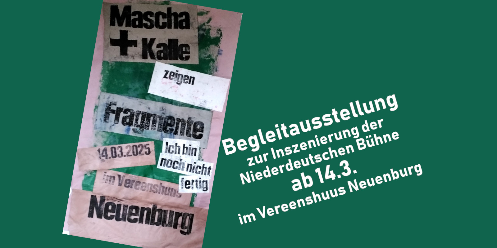 19:00 - 21:30 Kunstausstellung „Fragmente“ von Marie Charlotte und Karl-Heinz Proll im Vereenshuus 28. März 2025 / 19:00 - 21:30 Kunstausstellung „Fragmente“ von Marie Charlotte und Karl-Heinz Proll im Vereenshuus Begleitausstellung zur Inszenierung der Niederdeutschen Bühne Neuenburg. Vom 14. März bis 5. April 2025 im Vereenshuus Neuenburg. In seiner ersten Ausstellung 2025 zeigt der Vareler Künstler „Kalle“ Proll mit seiner… Kostenlos