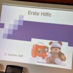 Neben praktischem Wissen über Verbandmaterial, Rettungskette und wichtige lebensrettende Maßnahmen zeigte unser Erste-Hilfe-Coach Joachim Höft auch den Umgang mit dem Defibrillator.