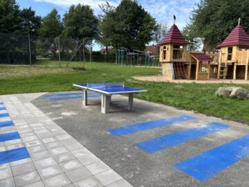 (C) Flecken Harsefeld: Neue Spielgeräte auf dem Spielplatz am Heuweg Harsefeld, u.a. Tischtennisplatte, Burgspielanlage und Calisthenics-Geräte
