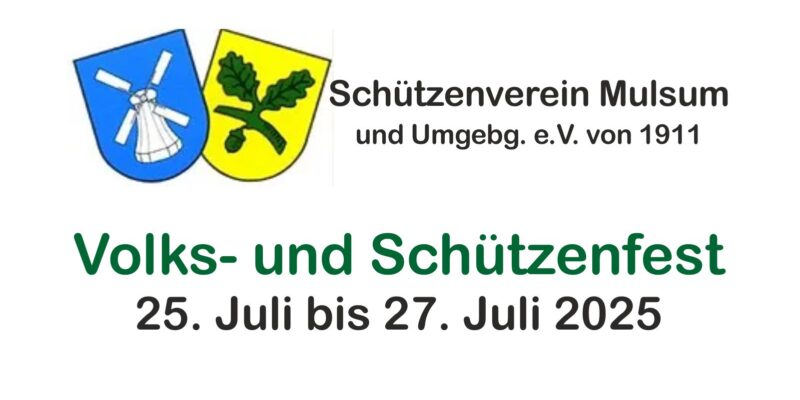 Liebe Mulsumer, verehrte Gäste aus nah und fern, liebe Schützenschwestern und Schützenbrüder. Endlich! Der langersehnte Höhepunkt unseres Schützenjahres rückt näher. Zu unserem diesjährigen Volks- und Schützenfest vom 25. Juli 2025…