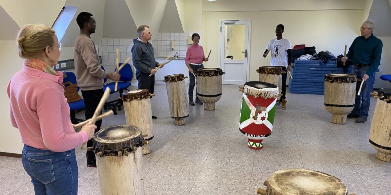 Bruno Mvuyekure war viele Jahre Trommellehrer in Burundi. Die traditionelle Ruhinzo Trommel ist ein Kulturgut in Burundi und eng mit dem Leben der Menschen dort verbunden. Bruno möchte diese Kultur und das Wirken der Trommeln auch hier in Varel präsentieren. Mittlerweile gibt es eine feste Gruppe, die sich jeden Samstag trifft. Bisher im Gemeindehaus Obenstrohe, aufgrund der Erreichbarkeit jetzt direkt in Varel.