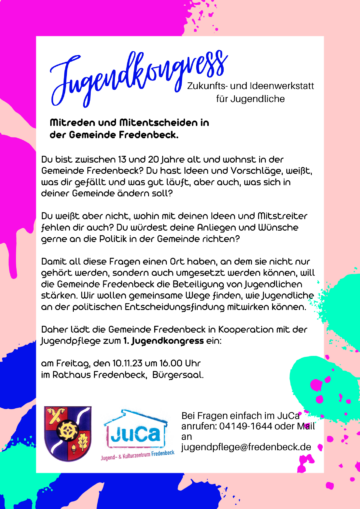 Die Gemeinde Fredenbeck lädt in Kooperation mit der Jugendpflege zum 1. Jugendkongress ein.